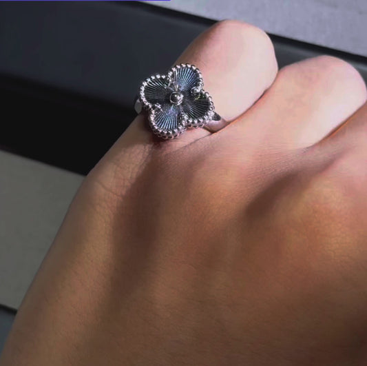 Guilloché Vintage Alhambra 18K White Gold Diamond Ring