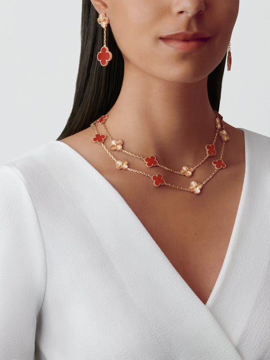 Magic Alhambra 18K Gold Mother of Pearl Clover Long Jewelry Set