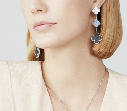 Magic Alhambra 18K White Gold White Grey Mother Of Pearl Clover Jewelry Set