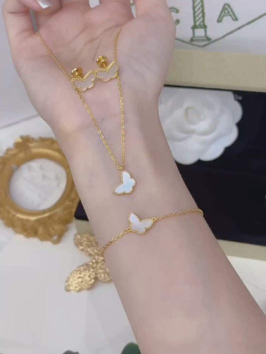 Sweet Butterflies 18K Gold Mother Of Pearl Jewelry Set