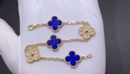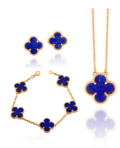 Lapiz Lazuli Four Leaf Clover Jewelry Set 18K Gold / Silver