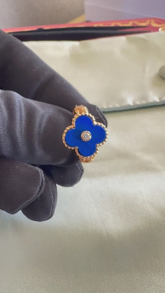 Lapis Lazuli Vintage Alhambra 18K Yellow Gold Diamond Ring