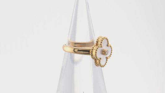 Mother Of Pearl Vintage Alhambra 18K Yellow Gold Diamond Ring