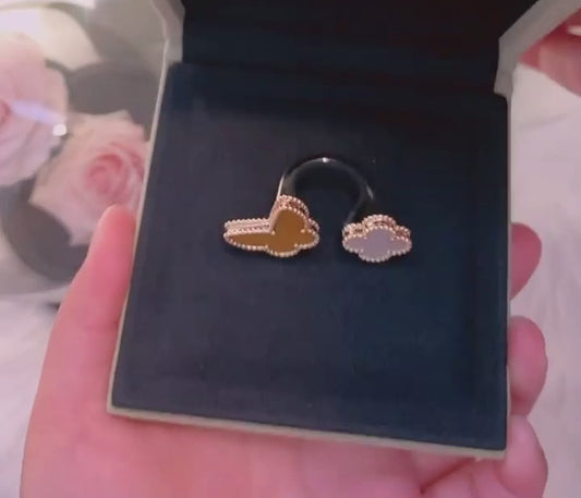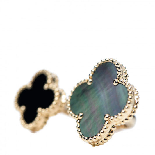 18K Yellow Gold Mother Of Pearl Onyx Magic Alhambra Between The Finger Ring