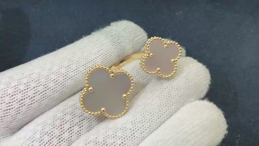 18K Yellow Gold Mother Of Pearl White Magic Alhambra Between The Finger Ring