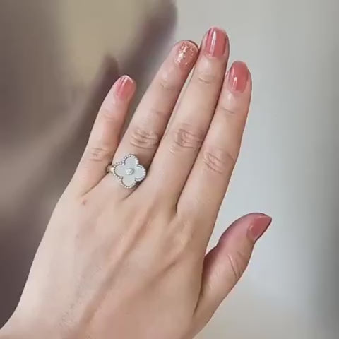 Mother Of Pearl Vintage Alhambra 18K Silver Diamond Ring