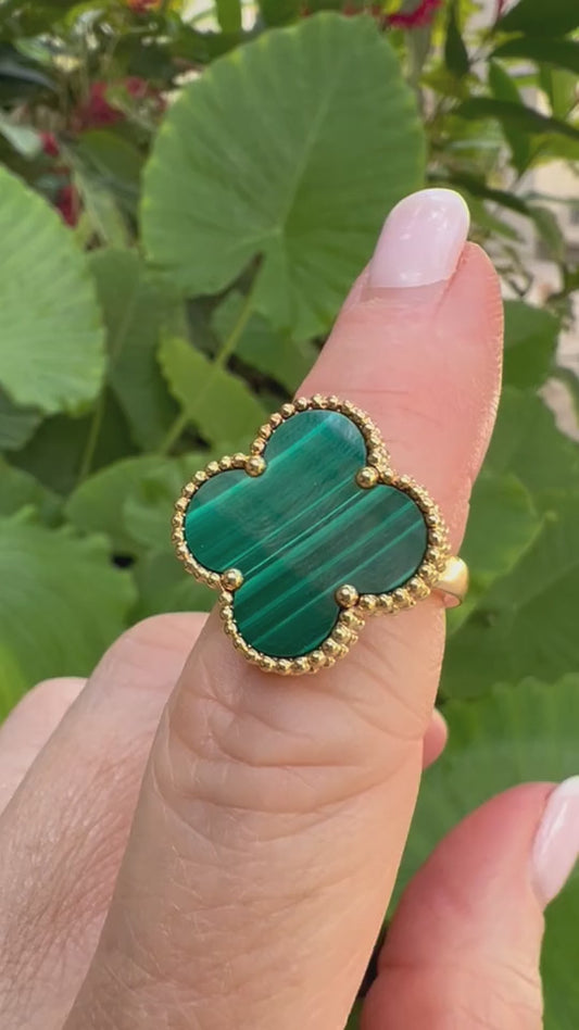 18K Yellow Gold Malachite Magic Alhambra Ring