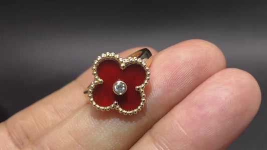 Carnelian Vintage Alhambra 18K Yellow Gold Diamond Ring