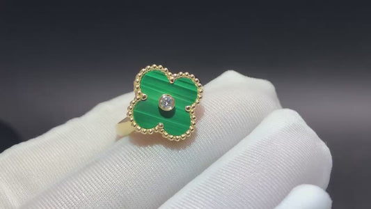 Malachite Vintage Alhambra 18K Yellow Gold Diamond Ring