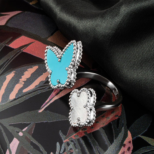 18K White Gold Turquoise Mother Of Pearl Lucky Alhambra Ring