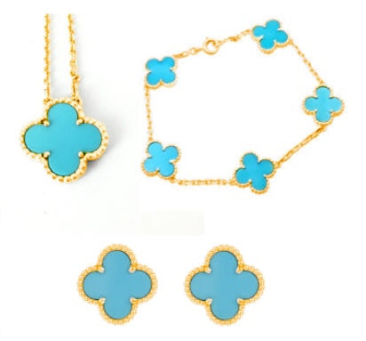 Turquoise Four Leaf Clover Jewelry Set 18K Gold / Silver