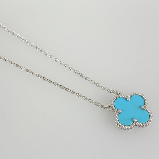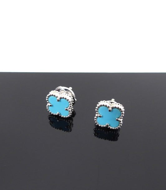 15mm Turquoise Sweet Alhambra 18k White Gold Plated Clover Earstuds / Stud Earrings