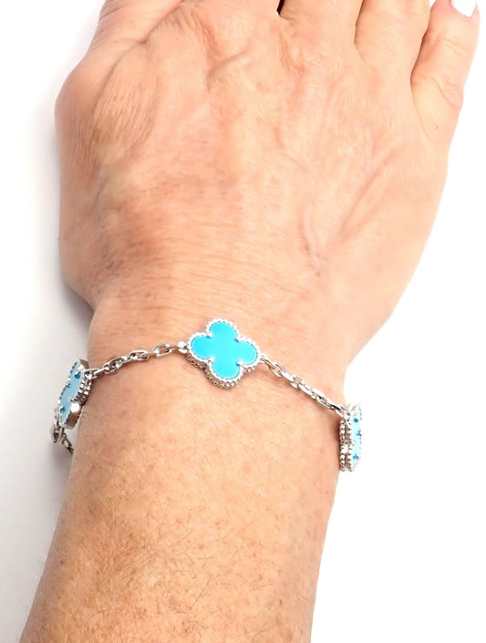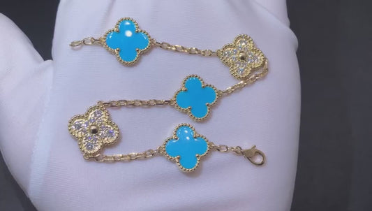 Vintage Alhambra 18K Yellow Gold Turquoise Bracelet